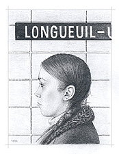 1. Final painting, Miss Longueuil (below). 2. Final pencil sketch, 6 1/2" x 5" (right).