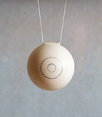 Most of the props for the painting were attached to cords and hung from the ceiling. This made it possible for me to meticulously place the objects exactly the way I wanted them to appear in the painting. To paint the eyes, I drew a couple of circles on a table tennis ball to represent the pupil and iris and then positioned the ball at a designated angle every time I wanted to paint its corresponding eyeball on the painting.